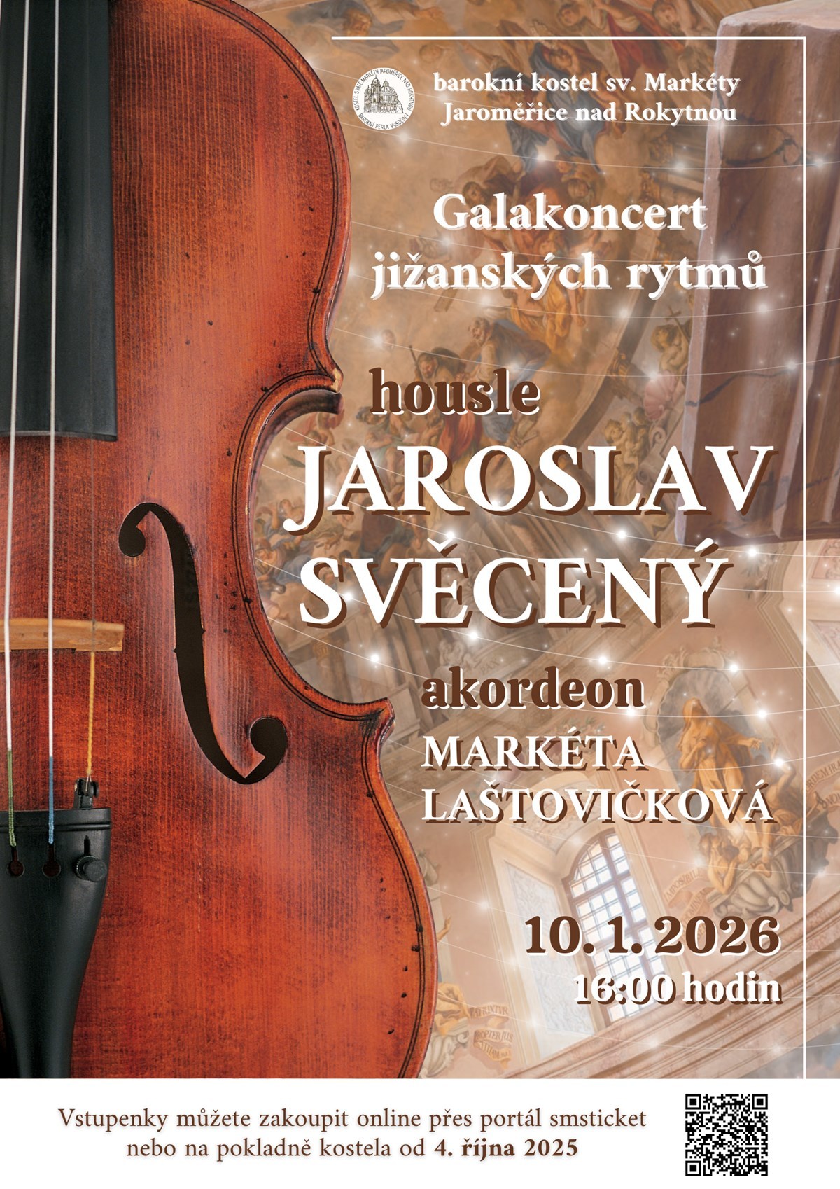 Srdečně vás zveme na galakoncert jižanských rytmů v podání houslisty JAROSLAVA SVĚCENÉHO za nevšedního doprovodu akordeonu, který rozezní MARKÉTA LAŠTOVIČKOVÁ.
