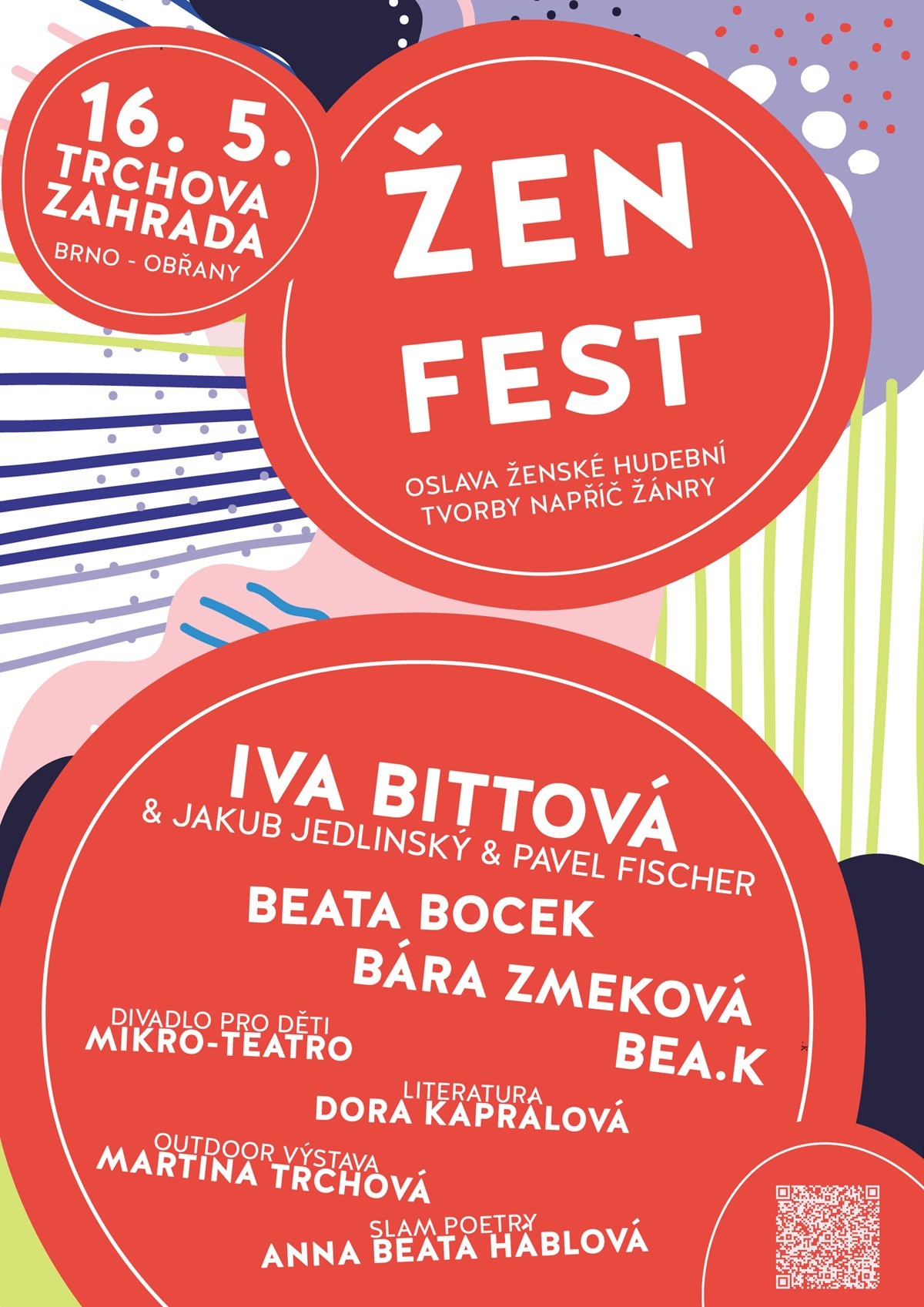 Ženfest pod třešní je rodinný open-air festival v Brně a zároveň oslavou ženské autorské hudební tvorby, a to napříč hudebními žánry i věkem. Je výsledkem čiré radosti z toho, že je na světě tolik zajímavých žen, které dělají hudbu (a nejen ji) po svém.