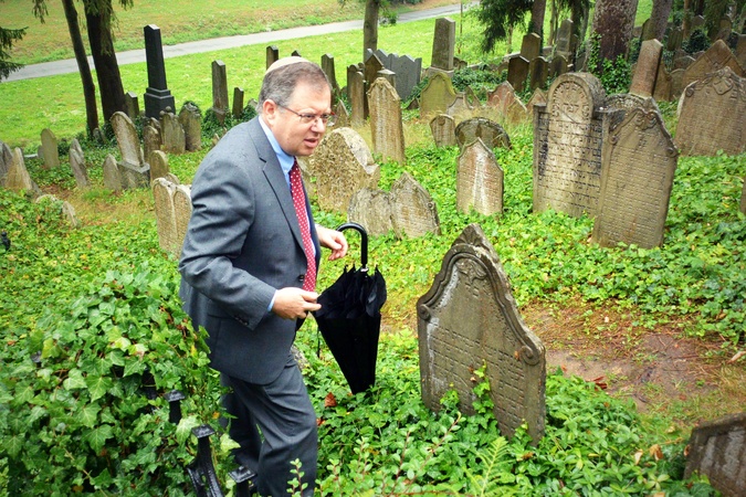 Z radnice vedly kroky pana velvyslance i jeho ženy na zahájení festivalu židovské kultury Šamajim do zadní synagogy v židovské čtvrti, kde poděkoval zástupcům města za záchranu židovských památek a udržování tradic. Na závěr svojí návštěvy se na židovském hřbitově pomodlil u hrobu svého předka.