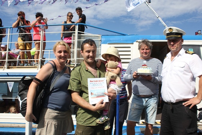 Výherkyně dostala doživotní lodní lístek na plavbu lodí po Dalešické přehradě a dort, o který se podělila s ostatními dětmi na palubě. Gratulanti předali rodičům výherkyně dárky za sebe a další dárky od partnera lodní dopravy, kterým je nedaleká Jaderná elektrárna Dukovany. Blahopřejeme.
