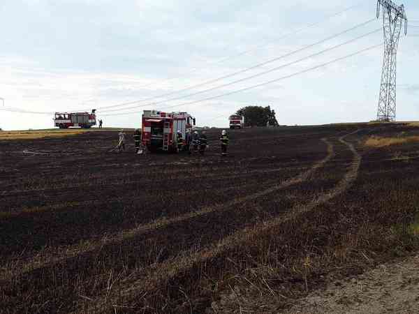 U Želetavy hořelo pole. Na místě zasahovalo pět jednotek hasičů