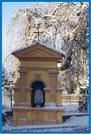 Pan Zámostný také opravil fasádu kapličky naproti základní škole, která stále vlhla a na několika místech opadávala. Restaurátor proto odboural betonovou plochu před kapličkou, oddrenážoval, zaštěrkoval a původní beton nahradil kamennou deskou. Zda toto opatření bude dostatečné, ukáže až čas, doufejme, že další opravy nebudou třeba.