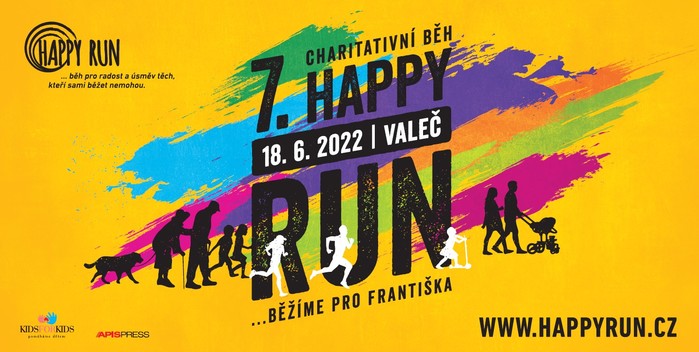 Zveme vás na již 7. ročník charitativního běhu Happy run, který se bude konat ve Valči u Třebíče. Happy run je série charitativních běhu, kdy se výtěžkem snažíme pomoci těm, kteří sami běhat nemohou. Díky předešlým ročníkům jsme již rodinám mohli předat celkem téměř dva miliony korun. Veškeré informace o předešlých ročnících i o tom budoucím najdete na našich webových stránkách www.happyrun.cz.