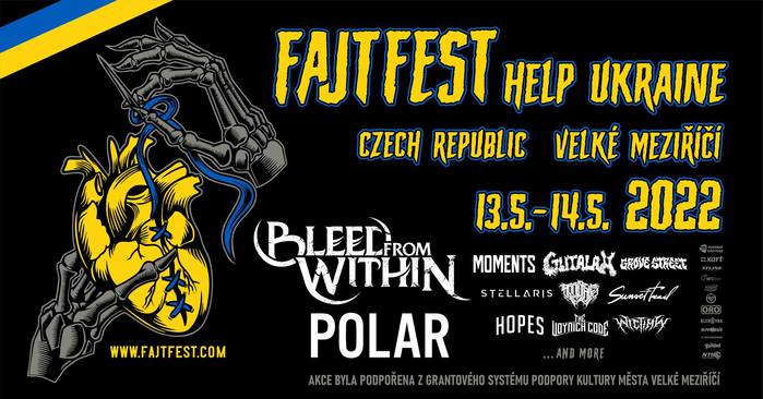 Slovo HELP sloužilo před 2 lety úplně pro jiné účely. Pro záchranu kultury a festivalu jako takového. Teď toto slovíčko dává úplně jiný význam v daleko důležitější situaci. Rozhodli jsme se proto, že místo Help Party vol. II bude tato akce přejmenovaná jako FAJTFEST HELP UKRAINE, kde na místě uspořádáme sbírku, do které bude zapojen i samotný festival a veškerý zisk z této sbírky bude odeslaný na pomoc Ukrajině přes organizaci ČLOVĚK V TÍSNI. V tomto období jde ekonomická situace festivalu stranou a budeme se snažit tuto sbírku co nejvíce podpořit. Naši skorosousedé to opravdu potřebují a jsme si toho plně vědomi.