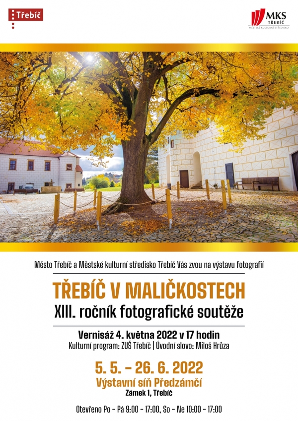Ve středu 4. května proběhla vernisáž výstavy fotografií třináctého ročníku fotografické soutěže. Téma loňských fotek bylo Třebíč v maličkostech. Výstava probíhá ve Výstavní síni v Předzámčí do 26. června, otevřeno je od pondělí do pátku od 9 do 17 hodin, v sobotu a v neděli od 10 do 17 hodin.