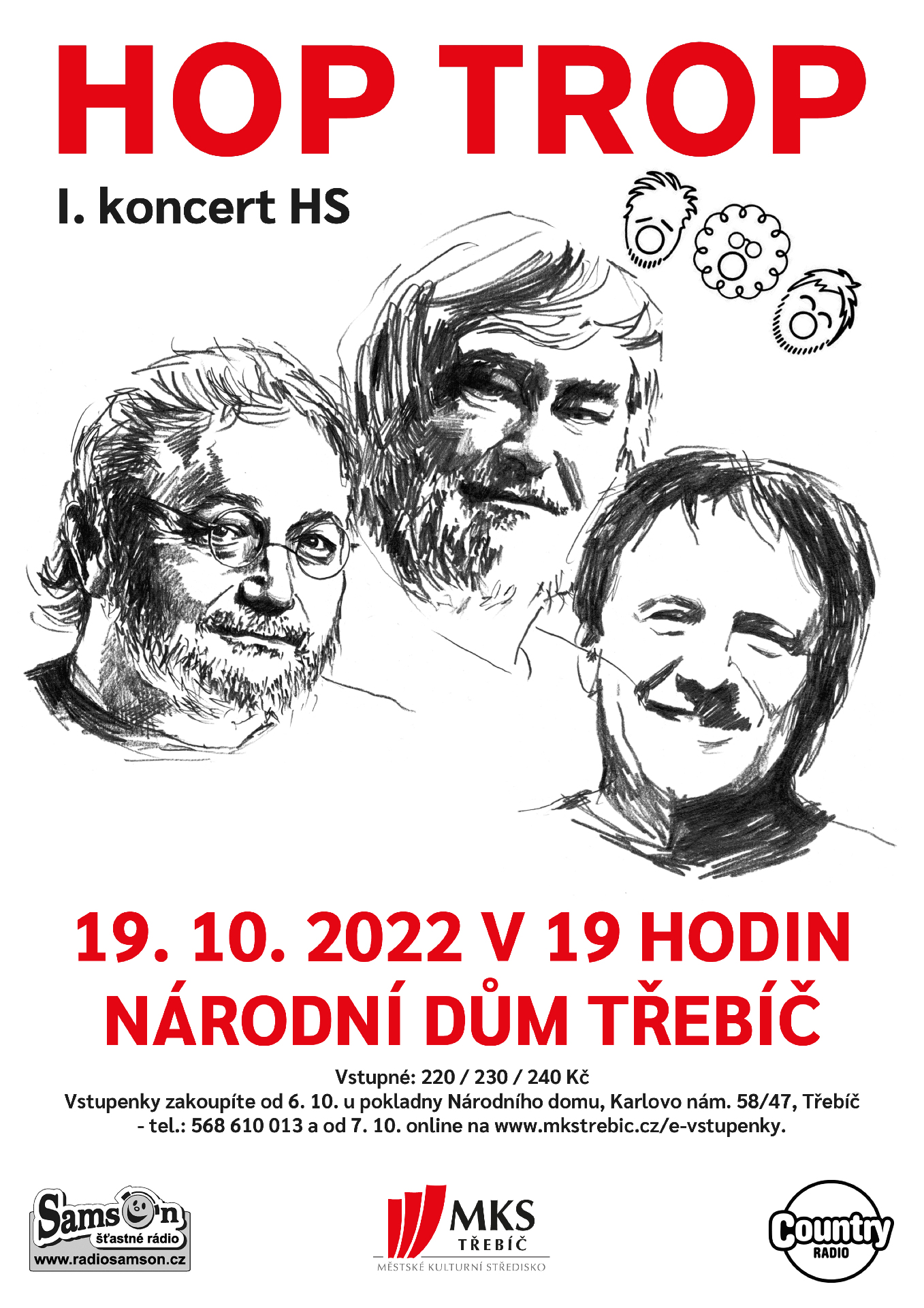 Legendární trampská skupina Hop Trop zahájí podzimní sezónu Hudebního salonu dne 19. října 2022 v Národním domě od 19 hodin. Čtyřicet let svého působení oslavila v roce 2019 vyprodaným koncertem v pražské Lucerně. Natočila řadu videoklipů, pět vinylových desek a cca 10 CD a 1DVD. Je držitelem platinové a několika zlatých desek, za rekordní počty prodaných zvukových nosičů.