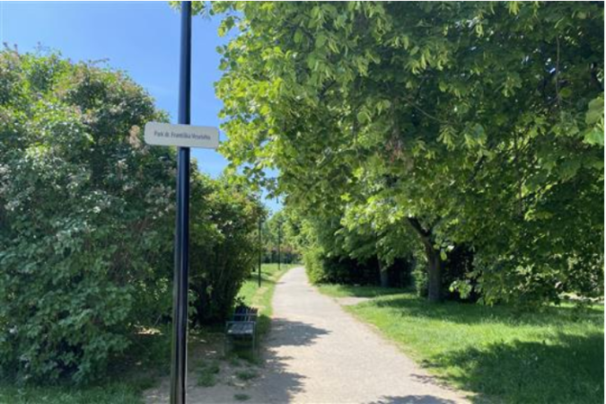Park nad starým hřbitovem v Třebíči nese od dubna jméno F. Veselého