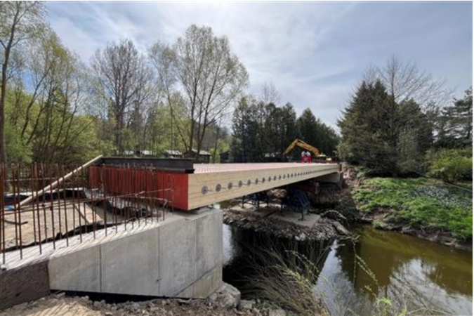 Nejpozději do 15. června budou moci pěší, cyklisté i osobní auta znovu projíždět přes Poušov. Nový most bude široký 6,6 metru. Původně mělo jít o výměnu dosloužilé konstrukce mostu přes řeku za novou, spřaženou, dřevobetonovou. Diagnostika spodní stavby a geologické rešerše ukázaly, že bude nutné postavit nové piloty. Ty byly dokončeny v březnu a začátkem dubna byla v noci přivezena na dvou nákladních autech nosná konstrukce.