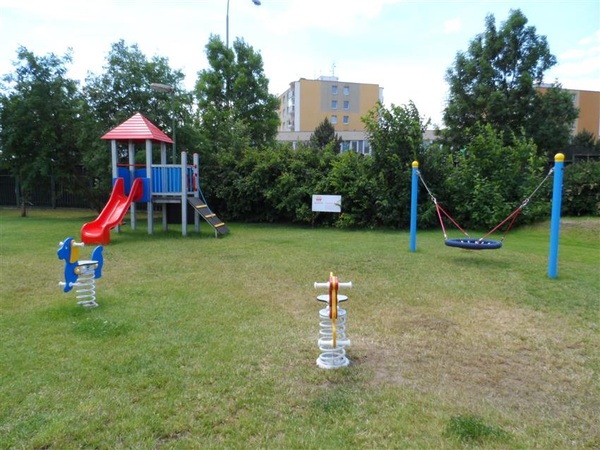 Dětské hřiště je součástí travnaté plochy přiléhající k Aquaparku Laguna. Pro návštěvníky aquaparku je hřiště přístupné z areálu, pro veřejnost z ul. Mládežnická přes parkoviště u areálu aquaparku.
