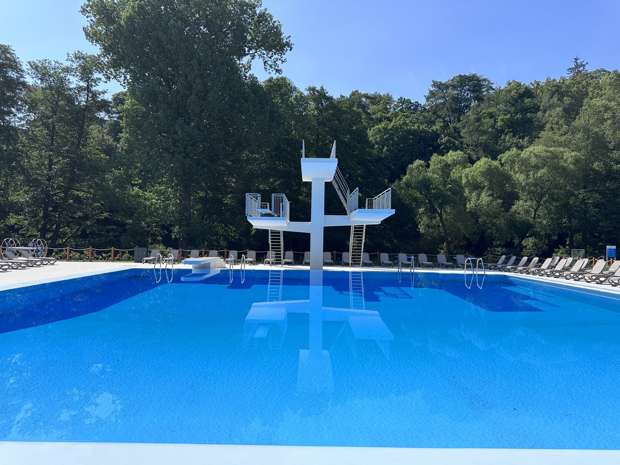 Rekonstrukce areálu začala v dubnu roku 2024. Koupaliště nabízí tři hlavní bazény – plavecký, skokanský i víceúčelový – s vyhříváním, dále dětské brouzdaliště, tobogán, skokanské můstky, minigolf, plážový volejbal, ruské kuželky a další doplňkové služby včetně pool baru a občerstvení v nově vybavených provozních budovách.
